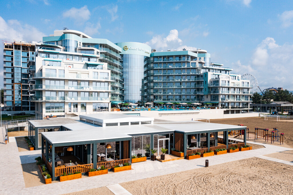 Классное впечатление от ресторана Sunset при отеле Grand Hotel Anapa 5*, в первую очередь, как от банкетного зала с великолепной кухней, отличной акустикой и современным интерьером! Расположен у моря, на песчаном берегу, а обустроенная территория и вид на морской закат обеспечивает неизменно удачные фото и видео. Браво!