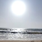 Вода шикарная ,теплая ,даже мидуз мало. С детьми место для купания удобное .В этом году пляж можно было почистить от ворослей сразу , а то от этого был запах. Но после шторма все стало отлично . Спасатели были всегда на месте и начеку ! Есть на чем покататься (банан, гидроцикл , доски ). Очень хорошее место !