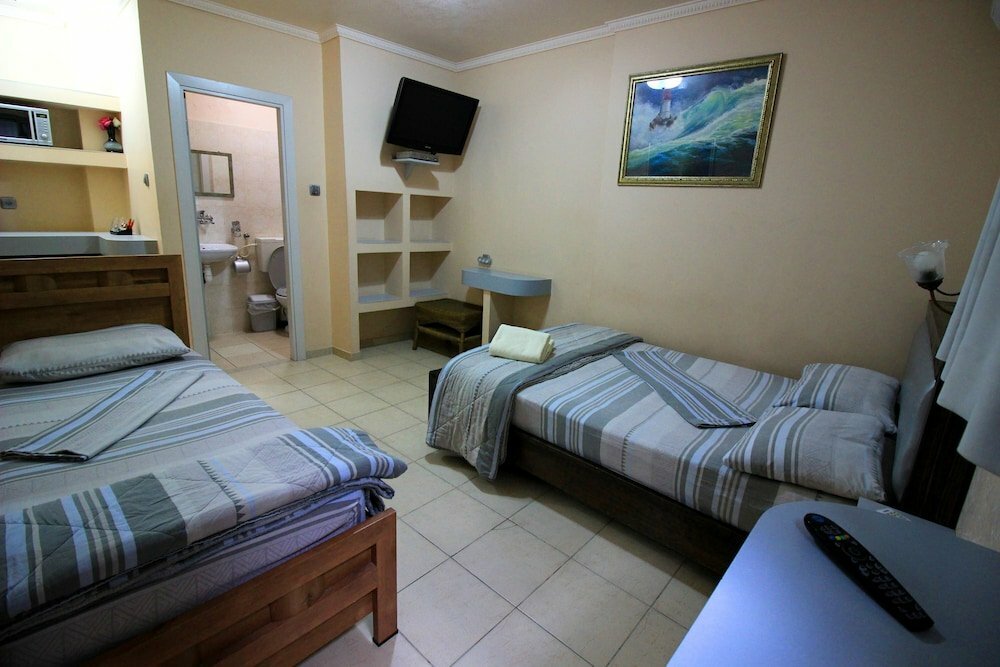 An ordinary motel is suitable for no more than 2 days, but I'm talking about an "economy" room, maybe an improved room is better. "Economy": microwave, small 2-bed, very small room for two, without a window (i.e. it is there, but it opens onto the patio opposite the common table, so we always had curtains closed), a bathroom is acceptable, TV (there are Russian channels), only two towels (large and a small one). For 6 days, nothing was cleaned, bed linen, towels were not changed. Audibility is something, especially when they were doing "magic" in the next room. At the reception, you could take plates and a knife. There is no kettle in the room. Boiling water is in the common room next to the reception. They meet well, there are employees who speak Russian. It's a long way to the sea: at least 20-25 minutes, the Red Sea seemed cold compared to the Mediterranean (we arrived in September from Cyprus). There are few cafes nearby + keep in mind that this is Israel and from Friday evening to Monday almost all cafes are closed (Shabbat), even in the tourist zone. But for entertainment, I recommend excursions: to Timna Park, to the Dead Sea (but prices there in shops are 1.5-3 times higher than in boutiques of products from the Dead Sea in Eilat itself), to Jerusalem. You can get to the Marine Observatory yourself, it's quite interesting. You can take a free tour to the Eilat stone factory, but the prices there are 2-3 times higher than in shopping malls in the tourist area. The cuisine is not rich, there is little seafood, because it is a non-kosher food. But I can recommend the cafe "Bay" in the tourist area - the portions are large, as a compliment they provide a set of delicious snacks, I liked the Israeli beer, the wine is also not bad. About the hotel: for very unassuming guests, it is more a youth option if you eat with a company. If you plan to travel with a family with children, then still look for hotels closer to the tourist area