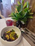 Если вы хотите попробовать местную рыбу и не разочароваться в ней - вам сюда. В меню заботливо подсвечены блюда приготовленные из местных продуктов. Место покоряет с первых минут. Внимательнейший сервис, официанты на настроении, их много и вас обязательно быстро заметят и примут заказ. Оформление ресторана классическое, богатое - очень впечатлила посуда - за нее отдельный плюс в репутацию места. Кофе хорош с легкой освежающей кислинкой в послевкусии , что редкость для неспециализированного места. Перехожу к кухне: • Паштет из копченного леща оценил даже я, хотя не являюсь любителем рыбы. Нежный, без запаха рыбы. Идеальная закуска. • Рыбная кошка - вкусная. Отдельно заслуживают внимания рыбные пирожки, которые подаются с супом. • Борщ на твердую четверку - без ВАУ эффекта. • Заказали еще стейк Мачете и он так же не подвел - нежный и сочный, что нечасто бывает в не мясных местах. • Рыбные котлеты показались чуть пересоленными, но это разве что чуть подпортило впечатление от них, так как действительно вкусно. Супberry однозначно правильное место для посещения, чтобы составить полное впечатление от Рыбинска. Будет сложно почувствовать город на Волге с говорящим названием не попробовав местную рыбу. Ценник сильно выше среднего - но место стоит того.