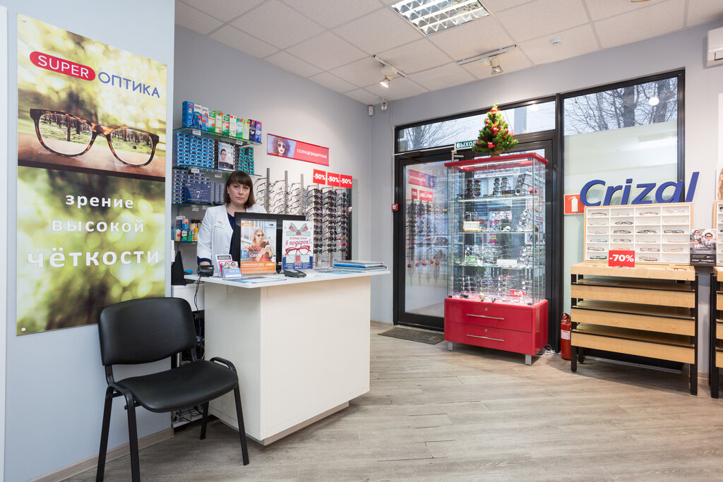 SUPER оптика отличный магазин для продажи очков и линз, имеет огромный ассортимент очков и линз для них. Можно провести диагностику зрения на современном оборудовании совершено беслпатно и сделать подбор очков. Мне очень помогли с выбором сотрудники Наталья и Мария, которые были добрые и отзывчивые. Здесь можно сделать бесплатную проверку зрения, а есть также большой выбор брендов таких как Том Форд или Армани.