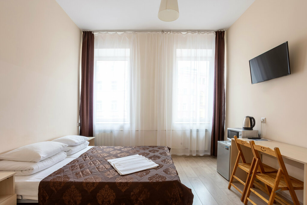 Первый раз остановились в этом хостеле. Выбрали по рекомендации. Были приятно удивлены вообще всем. Первое - это крайне удобное расположение. Пешком прошли до всех значимых мест. Во- вторых, вежливый и доброжелательный персонал. Далее - чистота в номере и белоснежное постельное белье. Брали номер стандарт ( в номере туалет, душевая, телевизор, холодильник, микроволновая, чайник), при входе микроволновка, кулер, посуда, холодильник, в доступе чай, кофе. Порядок, тишина. Пешком 5 мин до метро, площади Восстания, где много тур агентов с экскурсиями, развязка транспорта. В шаговой доступности сувенирные магазины, столовая, много разных кафе. Однозначно рекомендую для проживания