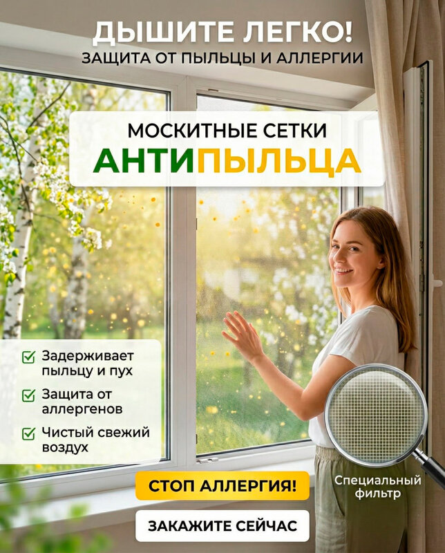 Заказала заранее перед весной сетки Антипыль т.к. в том году замучилась от аллергии. Остались очень довольны качеством. Наконец то летом можно будет спокойно спать с открытыми окнами. Уже очень заметно, что на подоконнике перестала появляться пыль. Сама компания отличная, приятно было общаться с менеджером, все очень долго и понятно обьяснял, спасибо за подробную консультацию!