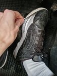 Покупали жене кроссовки. В итоге она проходила в них месяца три. В первый месяц порвался стык с подошвой, сейчас вот такая дыра чуть выше. Ася замша выглядит как будто бы ей 10 лет. Естественно это не единственная обувь, то есть их не занашивали. Первый раз вижу такое качество