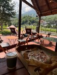 Любимое место в Долине) можно вдали от суеты полежать на травке на пуфах, полюбоваться на чудесный вид гор. Место тихое, вдали от основной дороги. Можно забраться на пуфы под деревьями-кустами, и вообще быть в уединении. Кофе вкусный. Фреш - невкусный. Долгих очередей не заметила, хотя был август.