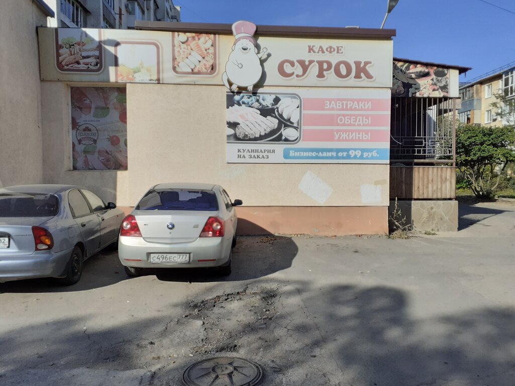 Каждый год приезжая в Евпаторию с 2019 года ходим только в это кафе, на обеды ( бизнес- ланч), если бы были завтраки с ужинами ходили бы 100%! Все свежее, порции хорошие, персонал вежливый и доброжелательный! Бизнес-ланч на выбор из 3 супов, 3-4 гарниров, 3-4 горячего, и 3-4 салатов, компот и хлеб! Мои дети всегда спрашивают когда пойдём в "Сурок", все вкусно и по домашнему (рекомендую окрошку)! Есть кондиционер! Очень рекомендую данное кафе! Отдельное спасибо персоналу!