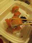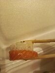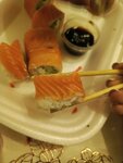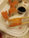 Заказала суши Филадельфия Да пришли суши но огуречные ) Запах очень настораживает Первый раз такое ) Слой рыбы отдельный вид анекдота 😅 Привозят быстро на этом спасибо !