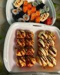 Добрый вечер. 1. Суши невкусные. Рис используют не для суши, вкус сразу проигрывает 2. Доставку обещали в течение часа, привезли через 1,5. Никто не предупредил о задержке, сама звонила и уточняла. 3. Платная доставка, однако, на странице в ВК другая информация. При условии платной доставки необходимо спускаться к курьеру на улицу ( а в чем смысл доставки? ). Надо отдать должное девушке, я попросила подняться (т.к.нога в гипсе) и она доставила до квартиры. Курьеру огромное спасибо. 4.Написано, что можно заказывать непосредственно на странице в ВК. Но никто не читает. В итоге заказ по телефону На 4 звезды никак не тянет, поэтому 3