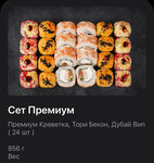 Радуете новинками. Сет премиум- очень вкусный. Привезли достаточно быстро, новая упаковка тоже порадовала. Рис нежный, не разваренный. Сочетание вкусов на 5+ (Креветка и ананас; креветка, лосось и огурец; копченая курица, бекон и корнишоны). Кстати, шапочка на роллах тоже новая, придает еще больше вкуса. Цена за роллы не высокая. Фото роллов в приложении ничем не отличается от реальности, все в точности!