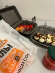 Заказали сет и отлельно филадельфия/калифорния . Выглядит вроде как прилично , но когда попадает в рот ( чувствуется только рис , переваренный ). Но филадельфия вообще убила ( первое что - это она рчень странно пахнет, на вкус как будто селедка крашенная ) Заказывали второй раз - но видимо это был и последний Не понимаю к чему писать миллионы назыаний , если весь сет с начинкой омлет , огурец сыр. Так и напишите все с омлетом