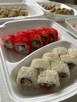 Одни из самых вкусных роллов здесь. Они действительно отличаются по вкусу. (Во многих других заведениях наберёшь разных, а ощущение, что вместо всяких разных соусов и сыров используется один из ближайшего магазина) Хорошие цены и удобный сайт. Особенно понравилось, что острые роллы отмечены наглядно значком. Они тоже вкусные, но реально острые. В подарок дают тоже на удивление вкусные роллы (а не как часто бывает в других местах - самые дешманские, просто рис в нори с кусочком огурчика и маленькие.. ). Из недостатков - отсутствие оповещения готовности по смс или каким либо другим сообщением, когда забираешь самовывозом. Можно только смотреть статус на сайте, который не очень то точно информирует.