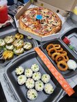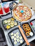 Заказали 2 пиццы, поучаствовали в лотерее - выиграли! Подарок великолепный: 2 большие порции ролл, пицца, горячая закуска, 2 больших напитка, 2 десерта! Ребята - молодцы! Очень очень приятно и очень вкусно 😋 Развития и процветания!