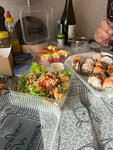 Сегодня у нас юбилей, рубиновая свадьба. Сорок лет совместной жизни. Заказали суши в суши хаус. Какие молодцы, сотрудники подошли с душой! Не поленились на каждом контейнере написать нам пожелания. Причем не формальные! От души! Это так приятно! Мы очень благодарны за вовремя привезенные и ооочень вкусные блюда!!! Вы как будто отмечали наш юбилей вместе с нами! Поэтому, спасибо вам за компанию!!! Процветания вам!!! 😘😘😘