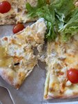 заказали пиццу пепперони и цезарь, пицца холодная тесто твердое дно не дожарено и прилипло к пергаментной бумаге больше заказывать не буду кусочки криво порезаны