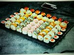 Ролл Калифорния классика (8 шт.), ролл Лава с крабом (8 шт.), ролл Дон бекон (8 шт.), Мини ролл с креветкой (8 шт.), ролл Сяке лайт темпура (8 шт.), ролл Бекон лайт темпура (8 шт.), ролл Нежный с лососем запеченный (8 шт.), ролл Калифорния темпура...