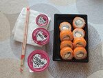 Приготовили быстро, но не вкусно. Дорого. За такие деньги можно в других доставках заказать куда интереснее сеты. В сете на троих прилагается всего две баночки соевого соуса и по одной васаби и имбиря, при этом васаби совсем не острый.