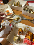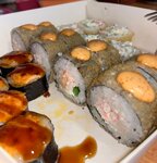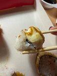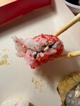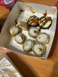 Решили с парнем немного разнообразить и вместо привычного нами любимого места заказать суши здесь, все было хорошо, ровно до того момента пока не открыли коробку с сушами, они очень маленькие, но дело даже не в этом, а в том что рис был ужасно слипшийся(на фото видно), как будто дома сами приготовили неудачные суши. Кушать было неприятно