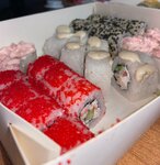 Ролл Калифорния классика (8 шт.), ролл Лава с крабом (8 шт.), ролл Дон бекон (8 шт.), Мини ролл с креветкой (8 шт.), ролл Сяке лайт темпура (8 шт.), ролл Бекон лайт темпура (8 шт.), ролл Нежный с лососем запеченный (8 шт.), ролл Калифорния темпура...