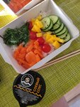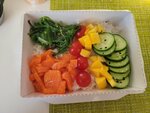 Сегодня взяла поке с креветкой. Рис несколько суховат, но ничего. "Удивило" следующее - в поке не было заявленных в составе манго, эдамаме, кукурузы и редиса, причём об этом никто не предупредил.