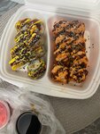 Суши не понравились, очень странный выбор ингредиентов в составе, запеченные роллы были очень непонятные по консистенции, оценки отличные, а на самом деле очень плохо всё :(