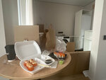 Доставка. Добрый вечер. Не первый раз здесь заказываем. И нареканий никогда не было. Но сегодня что-то пошло не так. Немного разочаровал заказ. Коробки все грязные, хорошо, что только внешняя часть. Пирог со шпинатом, сыром и курицей есть сложно - фарш сырой, очень сильно соленый и перчёный.