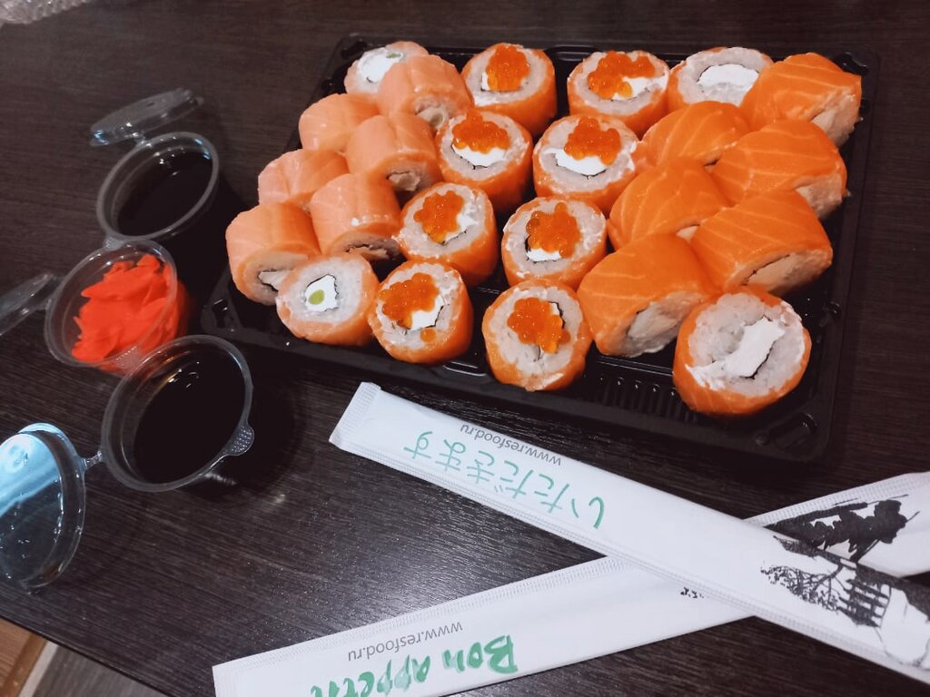 Доставка вовремя, курьеру-«5».Роллы очень маленькие и не вкусные. В меню не указана граммовка. Заказ на 2300 рублей с лишним, визуально, даже килограмма не было… не наелись, удовольствия не получили…больше не будем заказывать.