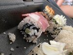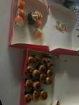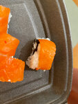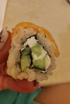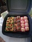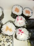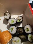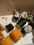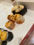 Всё кривое-косое. Внутри что-то не жевалось (похоже на засохшую курицу). За два набора что на первых фото отдано 1378р. В итоге никто не наелся....хотя обычно заказывая суши на такую сумму даже остаётся. В помещении жарко, летают мухи, лотки с продуктами стоят открытые. Больше сюда ни ногой.
