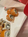 Заказывали на дом, принесли всё холодное, хотя заказывали теплые ролы. Наш дом, через дорогу. Во первых ещё раз повторюсь, что всё было холодное, во вторых - 3 сета - они все были одинаковые и очень много риса. Начинки не было почти ни какой, одни крабовые палочки, рис ,, где то курица проникала, где то лук. Заказывали: праздничный, запеченый и 1 кг по супер цене. Палочки были все не обработанные, раздваивалась и сет запеченый, ещё раз повторюсь был холодный. Хотя это через дорогу.
