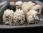 Роллы просто супер. Очень вкусные. Каждый раз заказываю. Всегда все свежее. Горячие. Доставка вовремя. В кафе чисто,коллектив вежливый приветливый. Отличное место и не дорого!