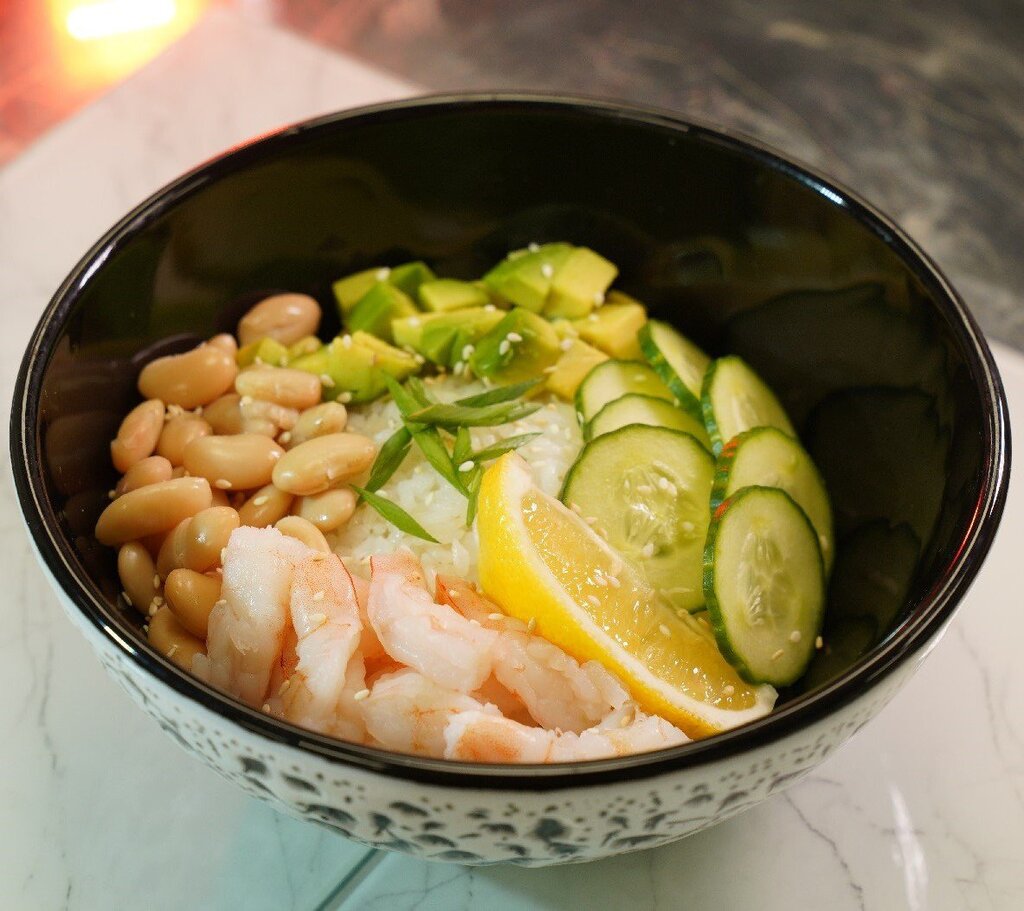 Рис, нори, икра масаго, сыр сливочный, креветка, огурец, соус фирменный, соус унаги, кунжут. Не подается соевый соус, имбирь, васаби