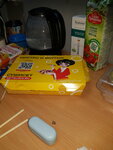 Рис, нори, сыр сливочный, огурец, тунец, соус спайси, соус терияки. Не подается соевый соус, имбирь, васаби.
