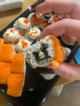 роллы вкусные, свежие. тут все норм. но доставка работает просто отвратительно!! половина заказов в вечернее время отменяют по разным причинам! график работы до 23, и несколько раз они даже привозили заказы оформленные в 21 и 22 часа. но по факту это лотерея и надо заказывать до 21 или ещё раньше. Потому что после у них то рис кончился то курьер уже уехал, то ещё что-то. в других доставках с таким не сталкивалась.