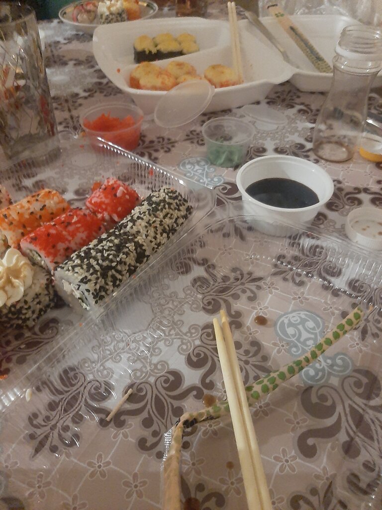 Ожидание не долгое Не позвонили до уточнения заказа, и на сколько человек будет заказ Морс, который обещали, не привезли Поставили оплату на безнал, курьер приехал, сказал что поставили наличку Роллер остыли, не завернули в фольгу Васаби и имбирь по порции на сет и 2 рола Кушать можно, но сервис надо доработать Заказывать больше не буду, и вам не советую