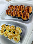 Креветки, сыр сливочный, яки соус, кунжут, унаги соус, масаго (Имбирь, васаби, соевый соус в комплект не входят)