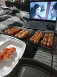 ролл Спайси лосось, ролл Самурай, запеченный ролл Румяный XL, запеченный ролл Килиманджаро. Имбирь, васаби и соевый соус не входят в заказ