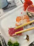 Отвратительнейшие роллы! На вид - ужас, на вкус безвкусные. Тунец ледяной и из него сочится вода. Таких ужасных роллов я еще никогда не ела🤢 395 рублей...жесть Надо было вернуть, но не захотелось ругаться(((