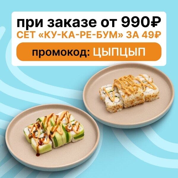49₽ за целый сет 😱 2 сочных ролла с копченной курочкой, карамелизированный лучок и хрустящий огурчик сверху и все это под яркими соусами С...