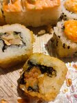 Итак, я тоже прочитал отзывы после приобретения 😂 Я буду краток, роллы очень на любителя (региональные сетевые роллы, с вкусом ниже среднего), мидии , если не хотите пропавшие (на вкус так точно) мидии с майонезом, не берите, и вишенка на тортике , прошу ознакомиться с фото , это все блюдо «Эби темпура», да отвечая на немой вопрос, это блюдо целиком, я не ел на момент фото. У меня нет вопросов к поварам или персоналу ( если людям позволяют так плохо работать, это не их проблема ) . У меня вопросы к собственнику или обладателю франшизы , при учете уровня блюд и ценовой политики , с чего вы живете , я редко пишу отзывы , но путешествуя порядка 5 лет в стране, скажу честно, чтобы было так плохо, это редкость. И мне не столько жалко выкинутых, а более никак это назвать нельзя денег, мне жалко человека , который не сможет в связи с финансовой ситуацией просто выкинуть вашу еду, а ему придется это есть.