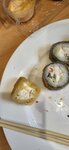 Мидии, сыр творожный Cremette, огурец, лук перо, соус спайси, кунжут. Ккал - 287,3, белки - 7,6, жиры - 6,7, углеводы - 49,0