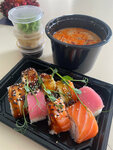 Самые вкусные роллы, которые удалось найти в этом прекрасном городе! Очень разные и свежие морепродукты, отменная пицца, которую мы получили бонусом всего за рубль(акция от определенной суммы). Отдельно важный момент для меня угорь в роллах без единой косточки и свежайший авокадо в мини роллах 🤤🤤🤤🤤 Приготовили все за 15-20 минут, очень вежливый и отзывчивый персонал🥰