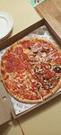 Впервые заказали пиццу в данном заведении через Яндекс еда. Давно наслышаны положительных отзывов от друзей и знакомых и тоже решили попробовать. Для первого знакомства с данной компанией решили остановиться на пицце) Заказали пиццу 30 и 35см, Кватро 2 L и Кватро 3 M.Что касаемо теста, очень даже хорошо. Начинка прекрасная, соус, сыр, креветки, лосось, все в большом количестве. Приятного что вы не экономите на клиентах.Очень порадовала доставка, привезли на 40 минут раньше заявленного времени и это в субботу в вечернее время 👌И спасибо за комплимент в виде конфеток,мелочь, а приятно 💕 Рекомендую однозначно.