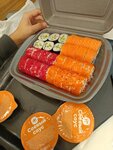 Было очень вкусно, спасибо) Взяли набор спайси и классическую Филадельфию. Все свежее и сделано качественно. Сделали заказ за 15 минут. Можно поесть как на фудкорте рядом, так и взять с собой. Цены тоже приемлемые, можно недорого поесть почти как в ресторане. Едим тут второй раз и второй раз довольны. Желаю кафе процветания)