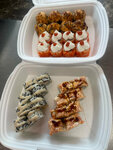 Суши очень вкусные, свежая рыба и достаточно большие куски, не сухой рис. Можно заказать самовывоз и доставку, готовят во время.
