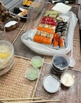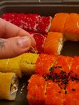 В этом месте заказывать не советую, люблю суши шоп и часто там заказывали из других филиалов, но тут треш какой-то, привезли набор на 2 часа раньше и еще ехал неизвестно сколько, заказ был к др, роллы без холодильника хранятся 2 часа, после холодильника они станут твердыми и невкусными, решила проверить вес и набор на 300гр меньше заявленного, а это примерно 10 роллов ну и бинго попалась нитка внутри ролла