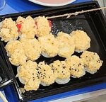 Копченый угорь, сыр Моцарелла, шампиньоны, майонез, спайси соус, унаги соус, кунжут.