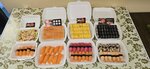 Variety of food:sushi and rolls, pizza