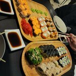 Плюсы: вкусный ролл Филадельфия XL. Чай тоже ничего. Официанты вежливые, приятные. Музыка спокойная, не напрягает. Минусы: очень долго ждали, больше 40 минут. Ролл "сёрфинг с угрем" не зашёл. Роллы разваливались, надо широко открывать рот и быстро туда ролл класть, иначе разлетается на стол и на пол. Ну, судя по тому, что мы смотрели на Яндексе, это самое приличное место в Кисловодске. Не сравнивайте с классными суши-барами высокого уровня. Здесь все по простому.