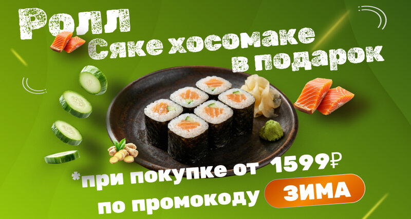 🔥 Зимний подарок к заказу 🔥 Холодно за окном — горячо и вкусно у нас 🍣🍕 Мы дарим ролл Сяке Хосомаки БЕСПЛАТНО при заказе от 1599 ₽. 🎁 В...