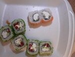 Заказывали роллы. Ужасный вкус: рис был сварен неправильно,по консистенции похож на кашу,рыбы практически не было ,сыра и проч. начинки тоже очень пожалели. Несвежий имбирь ,вялые нори…выбросили в мусор почти весь сэт ((
