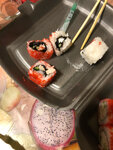 Первый раз сделали заказ 1.)очень долго,сказали30-40,по факту 1:20 2.)на сайте,в разделе запеченные,оказывается не все запеченные,а пополам,холодные и запеченые,просто жесть 3)рис переварен 4)суши слипшееся Никому не советую!!!!